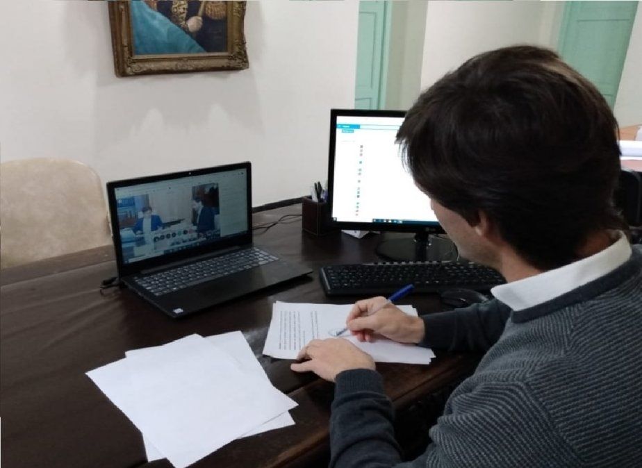 El intendente Nicolás Mantegazza participó ayer de la firma de un convenio virtual con el gobernador Axel Kicillof, al igual que los representantes de los otros distritos. Los 135 municipios de la provincia serán asistidos.
