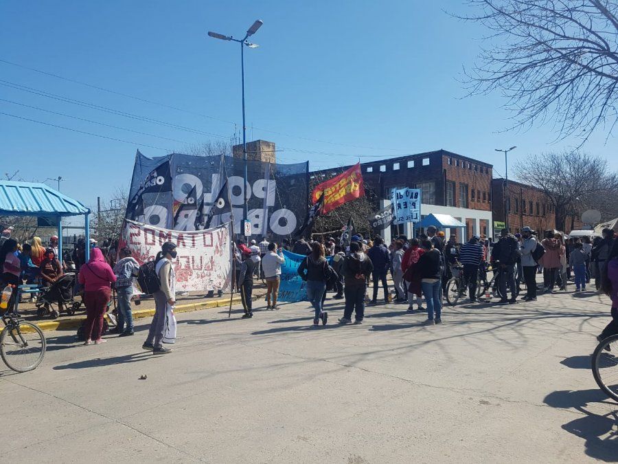 Son integrantes de movimientos sociales y de la usurpación. Protestan en Guernica, frente al Municipio.