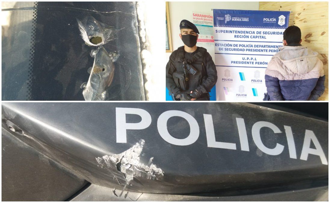 Sin embargo, en el momento en el cual interceptan al sospechoso, éste reacciona de manera hostil contra el personal policial. Primero les arrojó varias piedras y después un disparo de arma de fuego que impactó en el parante del parabrisas del patrullero. No se informó de manera oficial si la fuerza respondió con disparos.
