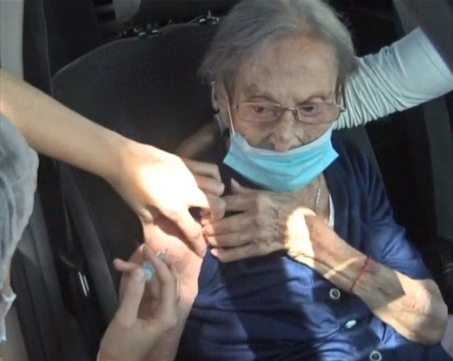 Fue en el CIC del barrio El Gaucho, en donde acudió junto a su familia, luego de haber esperado su turno. Las enfermeras se acercaron hasta el auto en donde ella se encontraba para que pueda recibir la primera dosis de la vacuna.