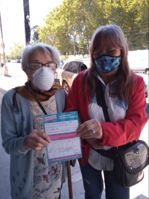Juanita, que vive en el barrio de Villa Obrera de Lanús, fue acompañada por una de sus hijas mayores. A su vez tiene 3 hijos más, 4 tataranietos, 12 bisnietos y 7 nietos, quienes expresaron su felicidad por la vacunación de su abuela.