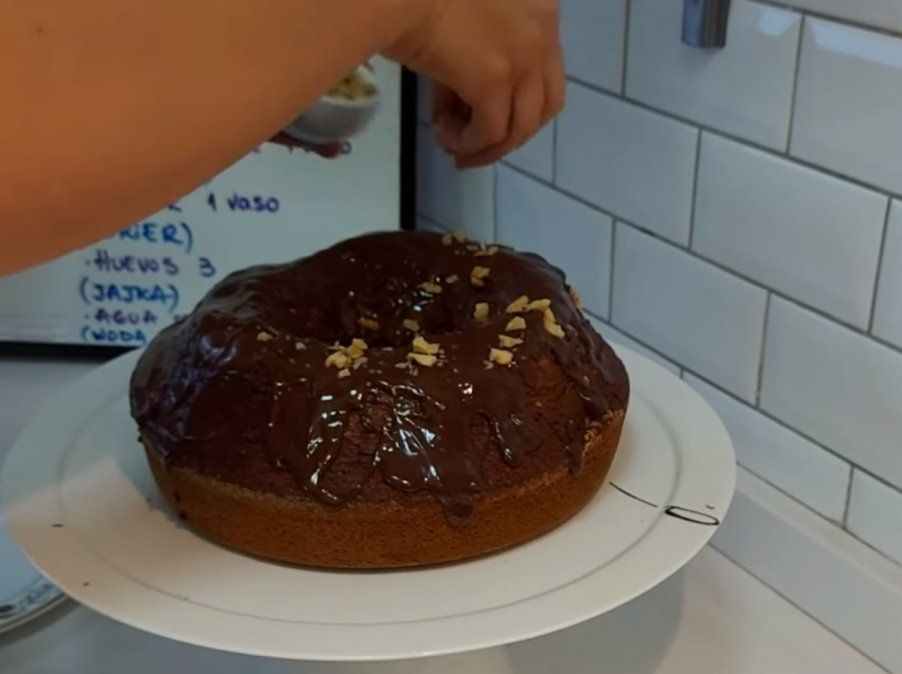 Opcional: se puede decorar la torta con chocolate derretido a baño maría y nueces
