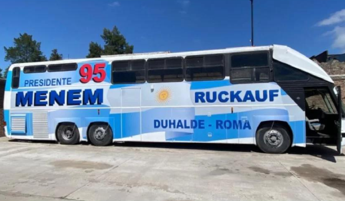El “Menemóvil”, una casa rodante que utilizó el ex presidente Carlos Menem en su campaña para la reelección en la campaña de 1995, es exhibido en Luis Guillón con el objetivo de subastarlo con un precio base de 6 millones de pesos.