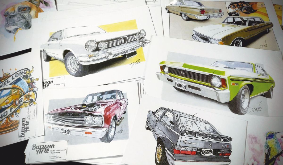 Al ser consultada sobre la razón por la cual dibuja autos clásicos, Estefanía Burwan explicó que, cuando ella era pequeña, sus papás se compraron un “Fitito”: “Lo consiguieron con mucho amor y esfuerzo, recuerdo que cuando mi papá lo arreglaba yo me quedaba al lado de él chusmeando todo mientras tomaba una chocolatada. El amor por los autos me lo inculcó él”.