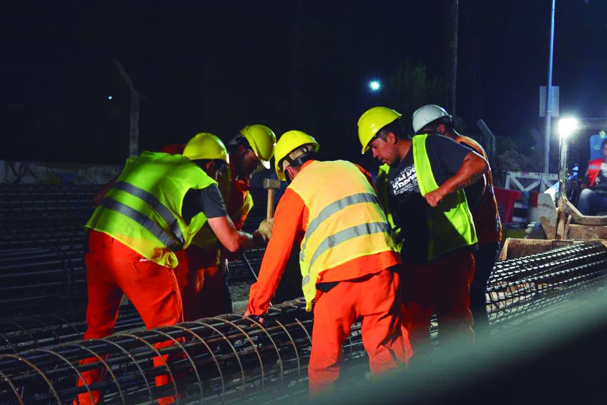La obra del Paso Bajo Nivel de la calle Bolivia en Alejandro Korn avanza durante las últimas semanas con trabajos nocturnos, cercanos a la línea eléctrica del servicio ferroviario.