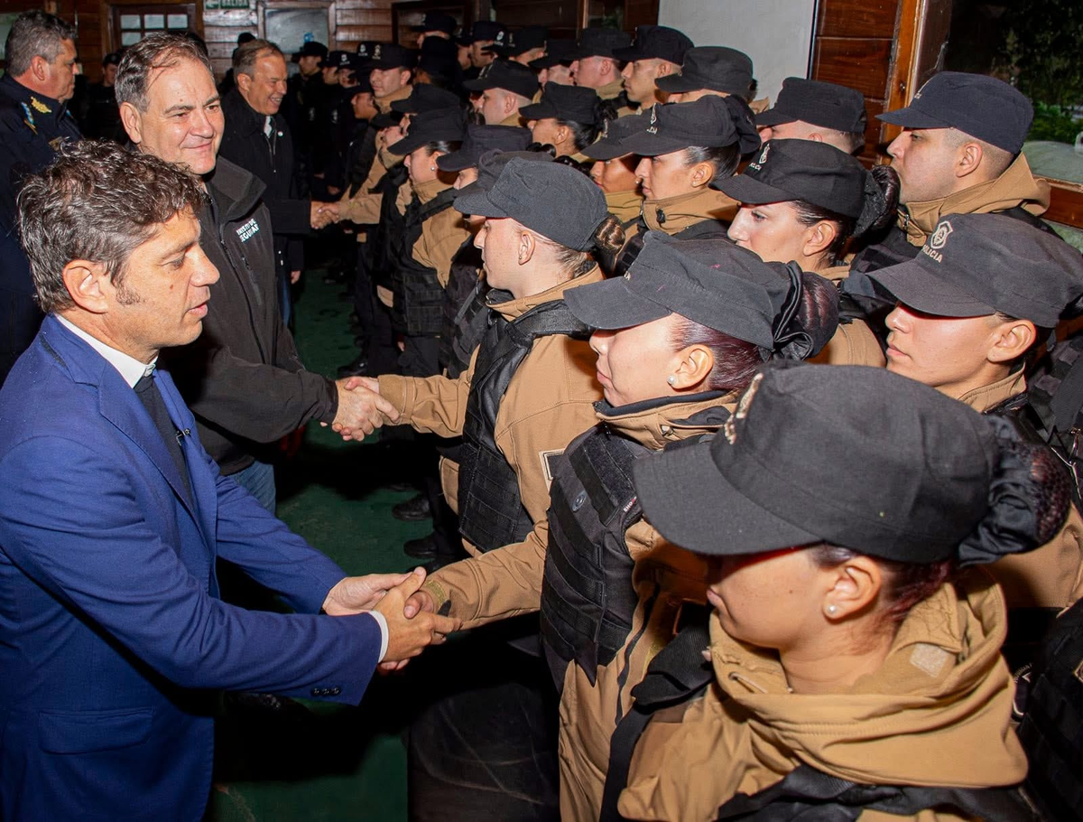 Los policías, formados en la Escuela Juan Vucetich, fueron presentados en un acto encabezado por Kicillof y Cascallares, en Almirante Brown.
