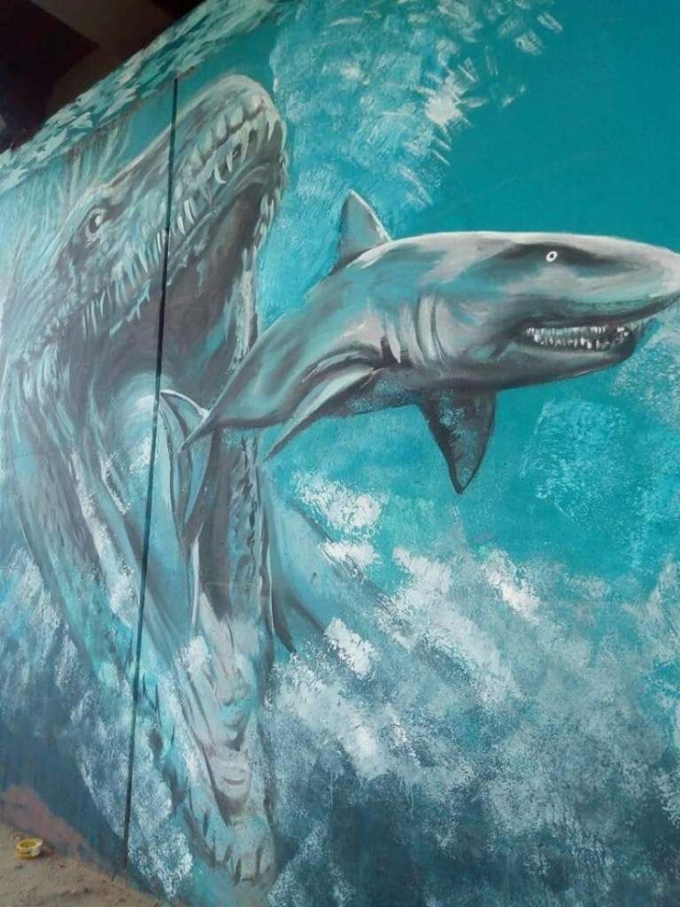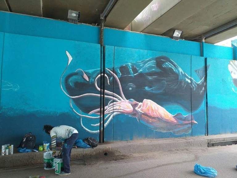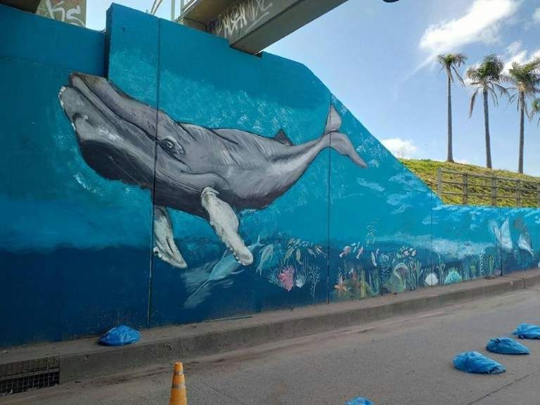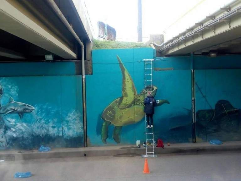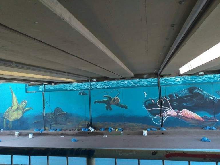 Realizaron un mural acuático en el bajo nivel de Glew
