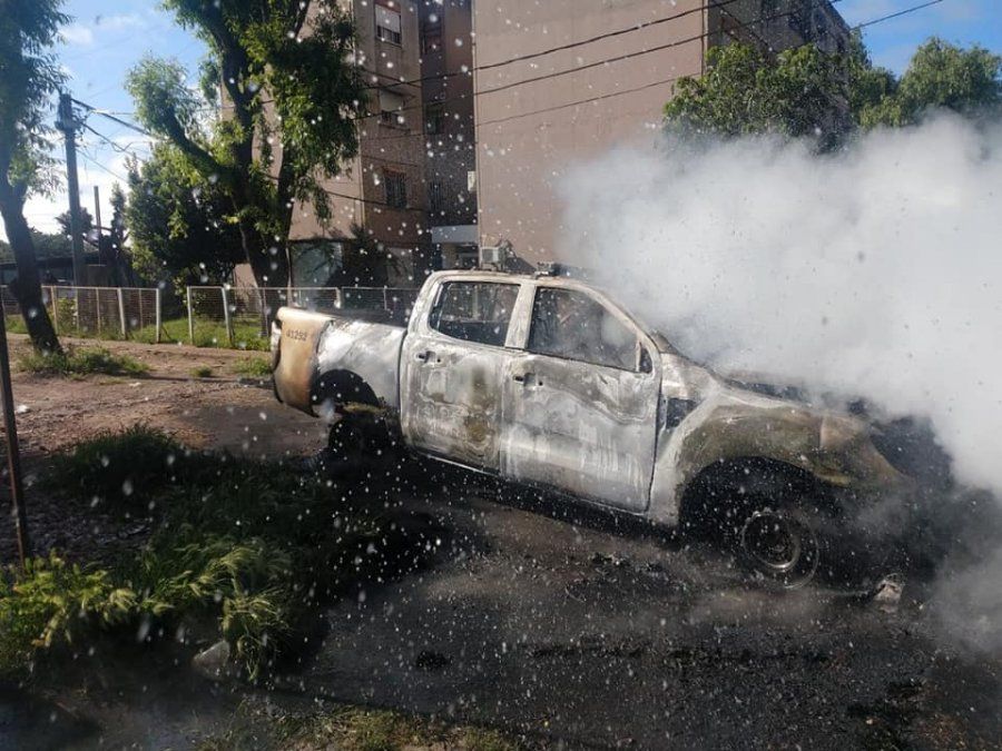 En un episodio insólito que se dio esta tarde, mientras los efectivos de la Policía realizaban un operativo en la localidad de Don Orione, varias personas prendieron fuego un patrullero con una bomba tipo molotov y se dieron a la fuga.