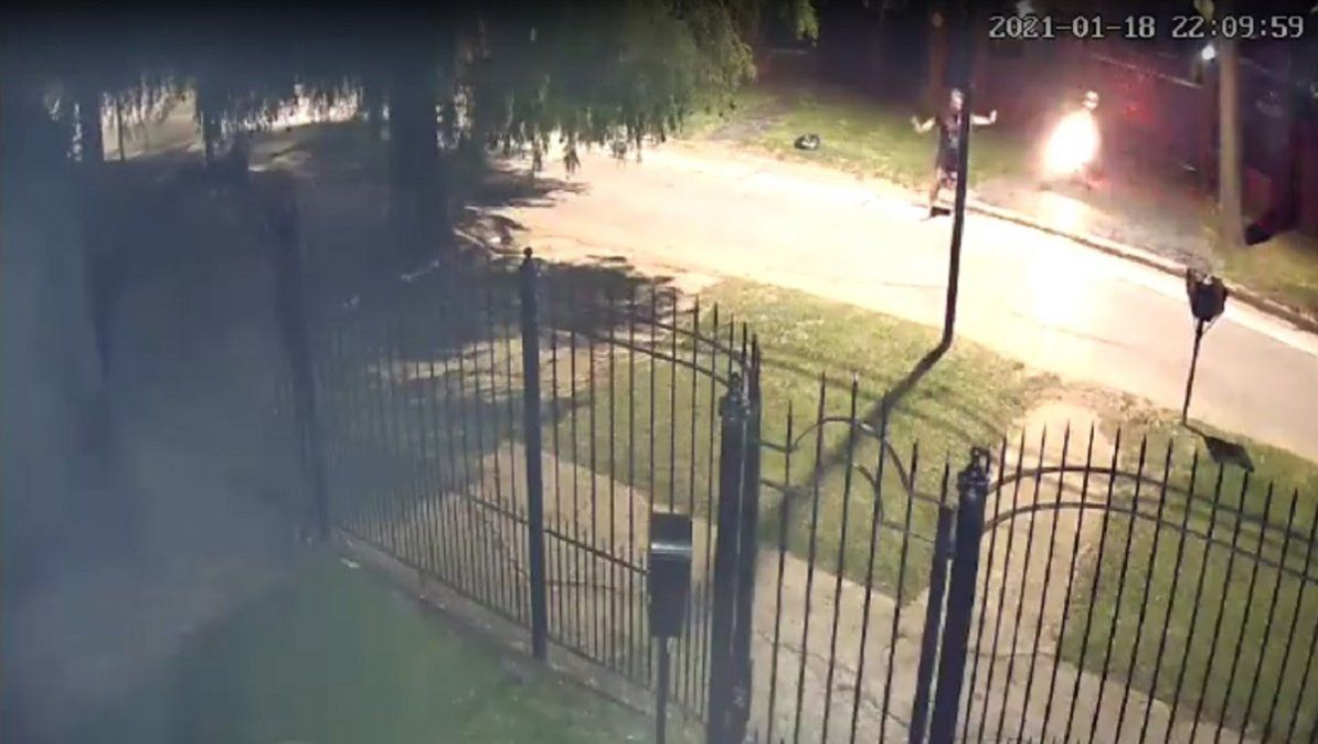 Según se ve en las imágenes, el hombre caminaba por la vereda, en las calles Podestá y Ochoa, cuando los motochorros se acercaron a él para robarle. Para evitarlo, Gabriel comenzó a correr para escapar de ellos.
