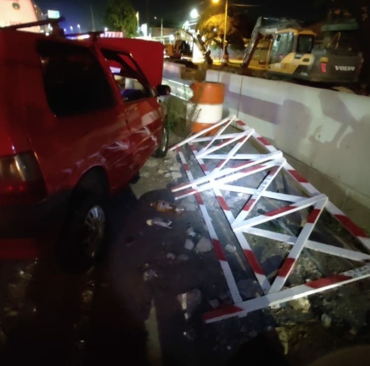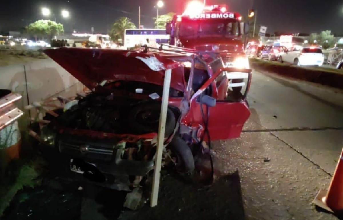 El auto marca Fiat color rojo terminó con el frente completamente destruido luego de impactar violentamente contra el elemento de contención que se instaló en el lugar por las obras viales que se llevan adelante.