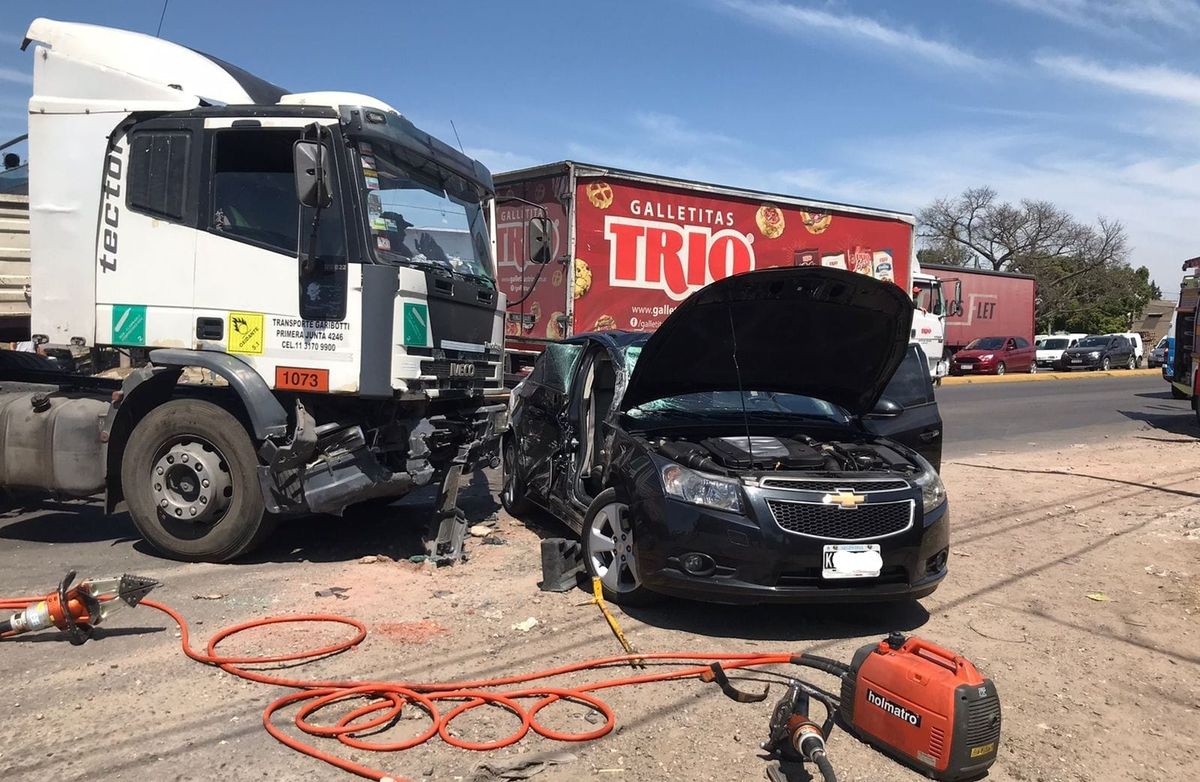 Fuerte choque entre un auto y un camión en Camino de Cintura