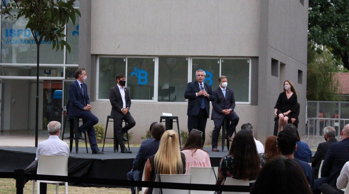 Antes, el Presidente y el gobernador Axel Kicillof habían participado de la inauguración del nuevo edificio del Instituto Superior de Formación Docente (ISFD) Nº41, ubicado en el barrio Vatuone.