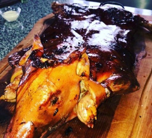 El cochinillo es un plato emblemático para Salustiana y Alberto Fernández lo probó en su visita a Adrogué.