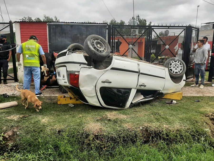 El episodio se registro cuando el sujeto que venia escapando de la policía en un auto, luego de cometer un ilícito, termino volcando en las calles 25 de Mayo y Olarra.