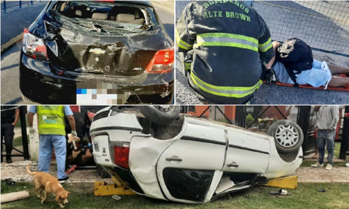 En una jornada accidentada se registraron dos violentos siniestros viales en Almirante Brown. En primer lugar un colectivo chocó contra un auto y luego un fugitivo de la Justicia volcó durante una persecución policial.
