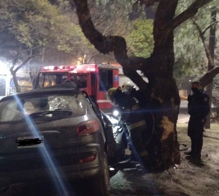 Según informaron desde Bomberos Voluntarios del distrito, se trataba de un persona que, afortunadamente, viajaba sola a bordo de un auto Peugeot, debido a que se incrustó de lleno con el lado del acompañante contra un árbol.