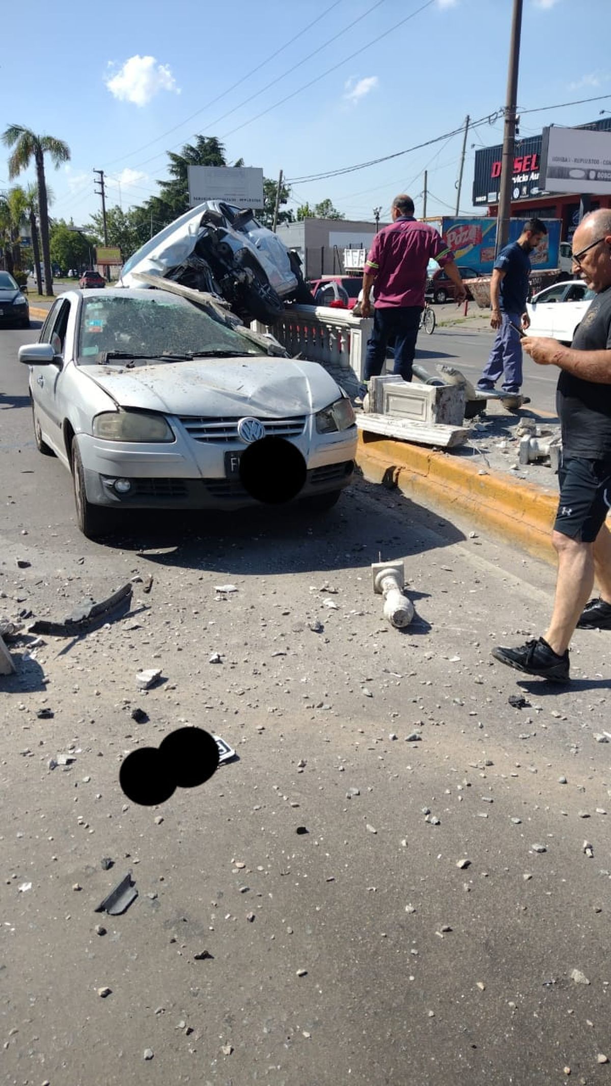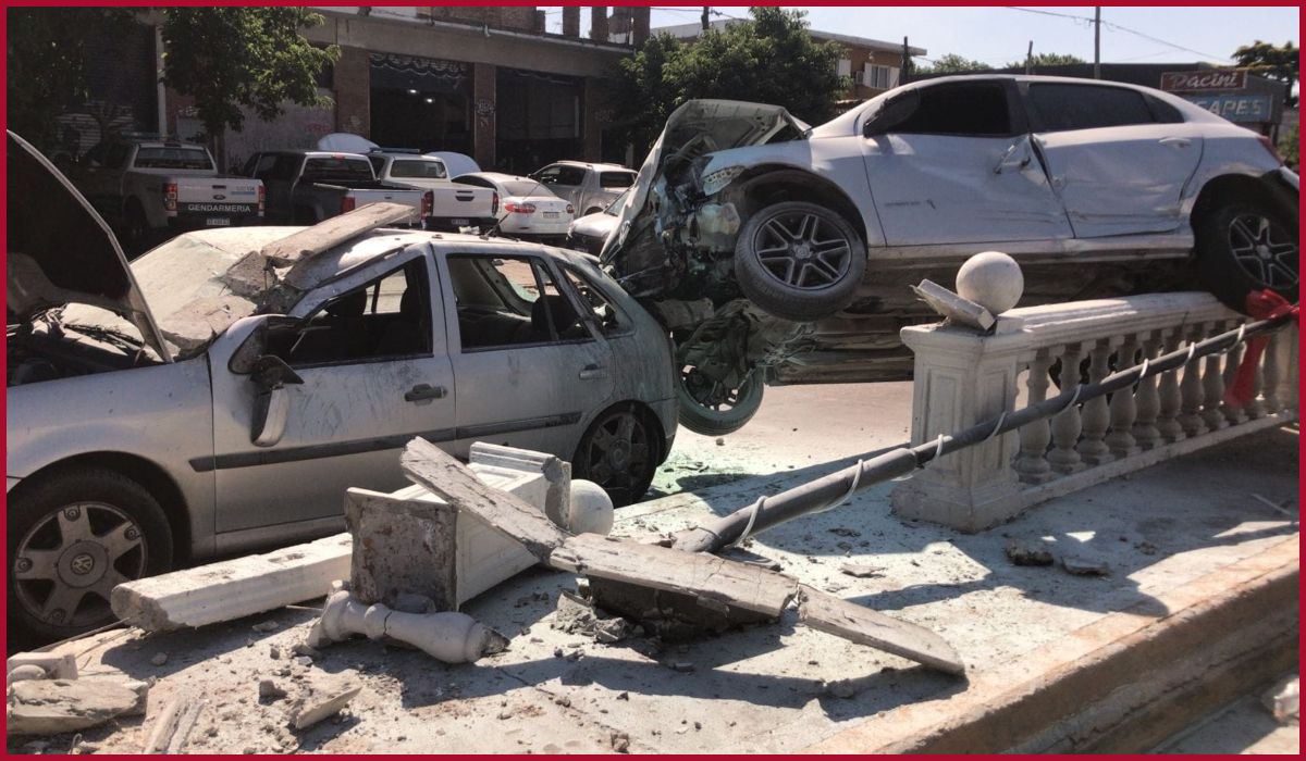 Vidrios rotos, parte del boulevard divisor de carriles, líquidos derramados sobre el asfalto y varias autopartes abolladas fueron las postales del choque múltiple ocasionado en la intersección de dos avenidas importantes de Almirante Brown como lo son Hipólito Yrigoyen y San Martín.