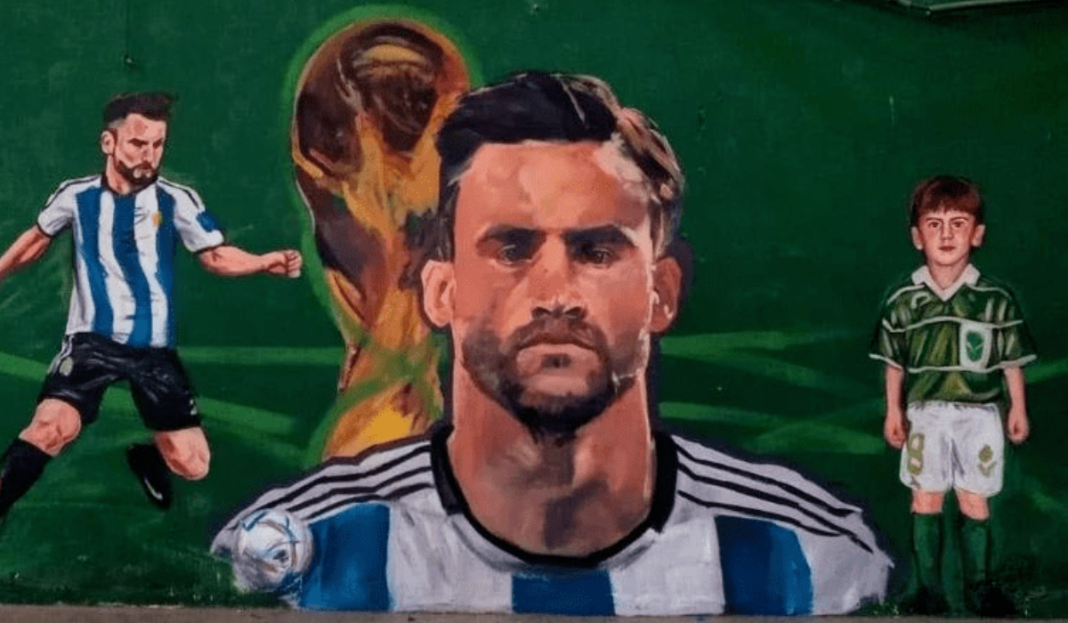El nuevo mural con la figura de Nicolás Tagliafico se encuentra en Rafael Calzada, localidad donde nació el futbolista de la Selección campeona del mundo.