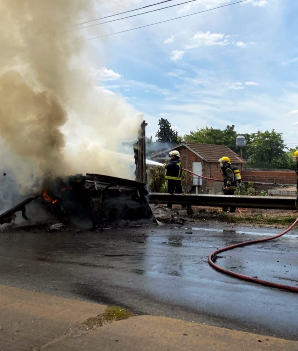 El rodado marca Mercedes Benz utilizado para el transporte de productos lácteos se habría incendiado a raíz de un desperfecto eléctrico, según las fuentes que pudo consultar El Diario Sur. Se trató de un siniestro de gran magnitud, ya que el humo emanado del vehículo pudo observarse a varias cuadras a la redonda.