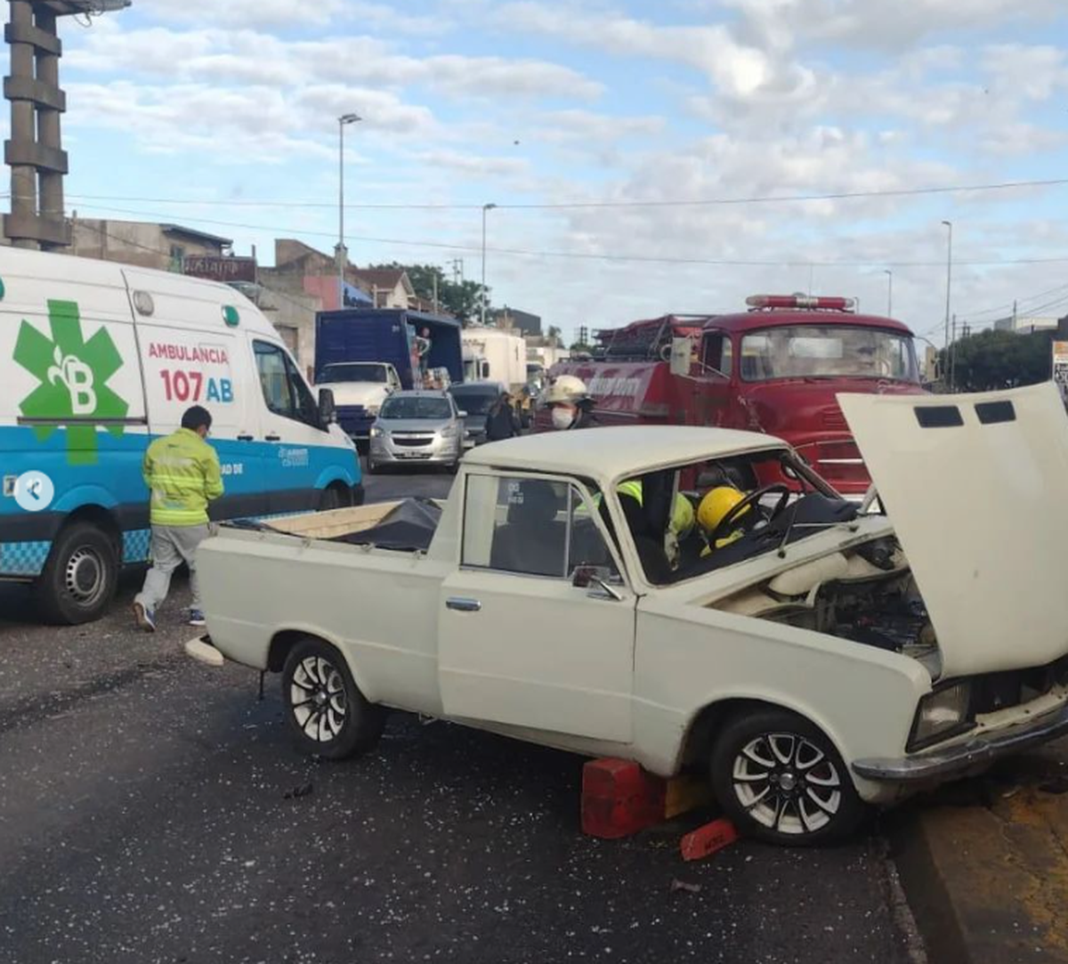 Este último siniestro ocurrió sobre Camino Presidente Perón, a la altura de la calle Laprida. Varios vehículos se vieron involucrados en una colisión en cadena que empezó cuando un camión embistió desde atrás a dos vehículos particulares.