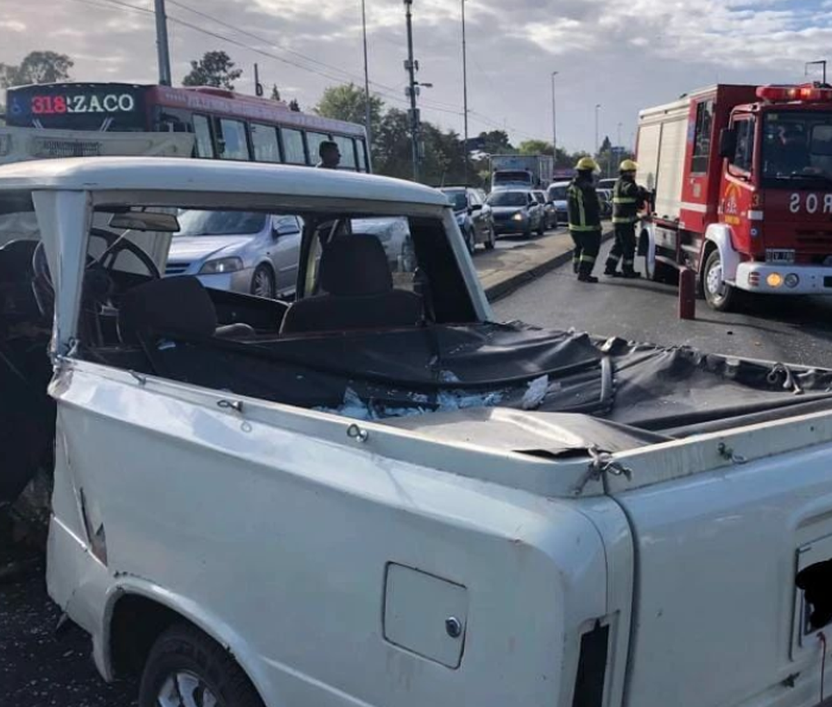 "Dos personas resultaron con lesiones", explicaron los bomberos y señalaron que la dotación que arribó a Camino de Cintura por el choque realizó la estricacion del vehículo para liberar al conductor. También asistió ante el siniestro el personal del Same y de la Policía.