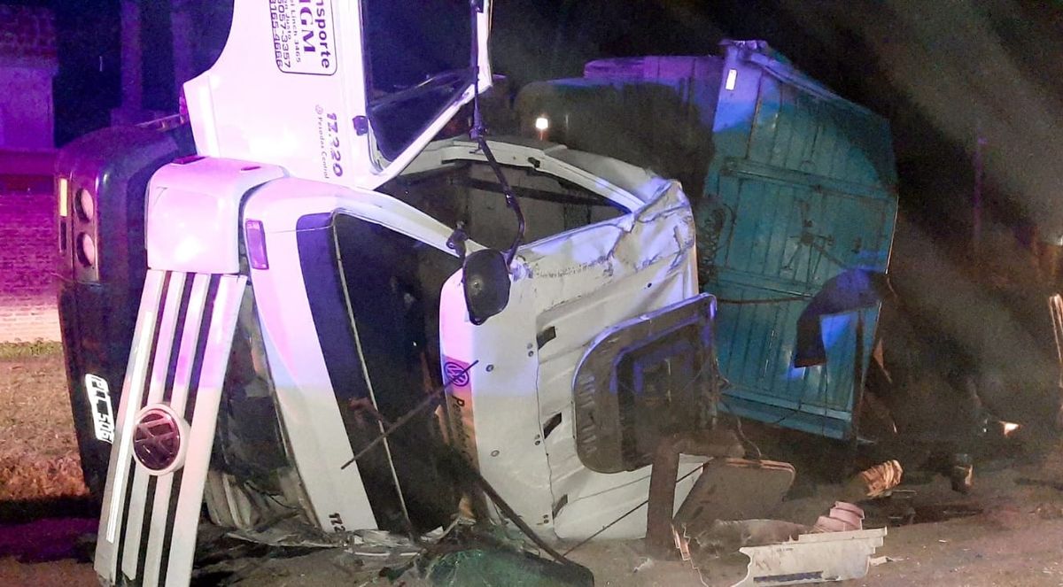 El impactante choque ocurrió en el cruce de la Ruta 16 con la calle Boulogne Sur Mer. El camión iba cargado con bobinas de metal. El conductor perdió el control de manera imprevista y el vehículo terminó volcando.
