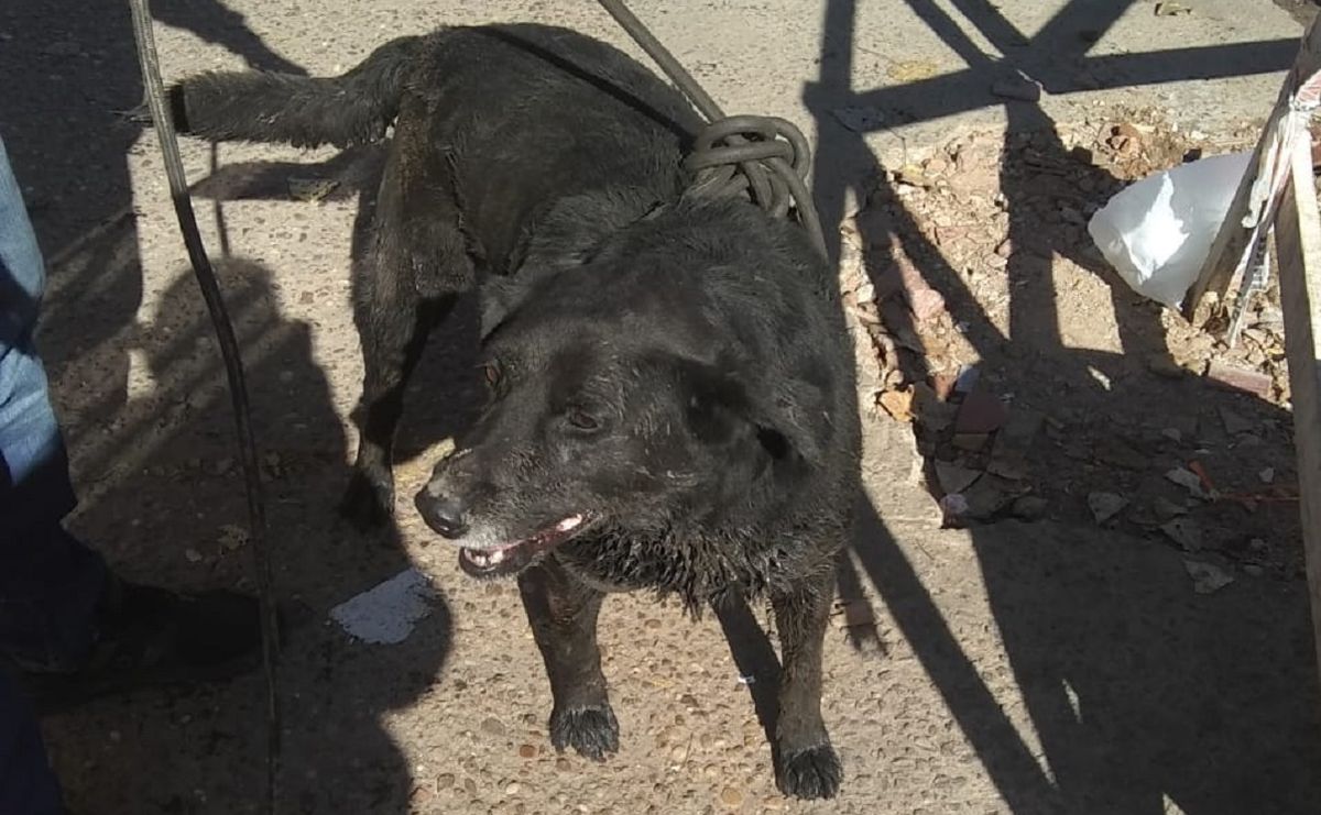 El perro estaba debajo de dos importantes avenidas de Don Orione y lo rescataron los bomberos locales.