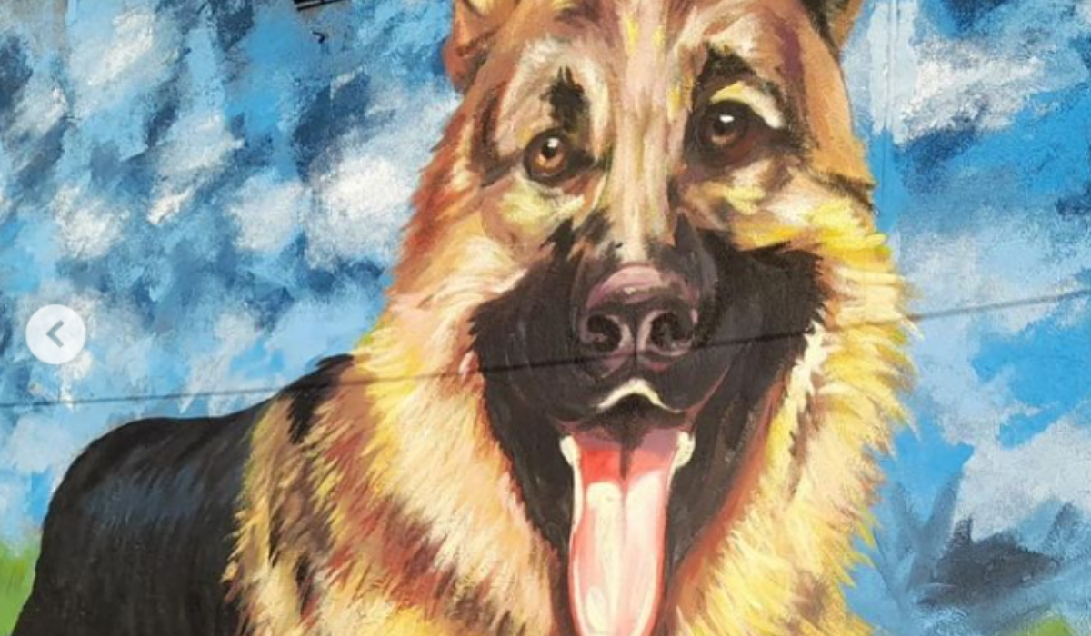 La semana pasada, el artista Tin (Martín) Rocktambulo (@tin_rocktambulo), desde el programa de Embellecimiento Urbano de Brown, rediseñó un mural que había sido pintado cinco años atrás por Damián Arh (@dmian_arh77) en San Francisco Solano (Avenida San Martín 6498): se trata de un perro, un pastor alemán, ya que al lado de la pared disponible para la obra había un puesto de policía.