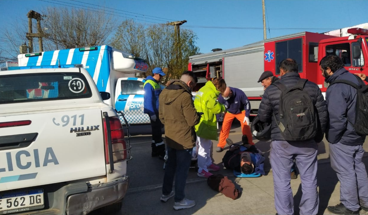 Un hombre que conducía una moto en la Ruta 16 y Drago, en la localidad de Burzaco, resultó herido tras haber chocado con un auto, según informaron los Bomberos Voluntarios de Almirante Brown.