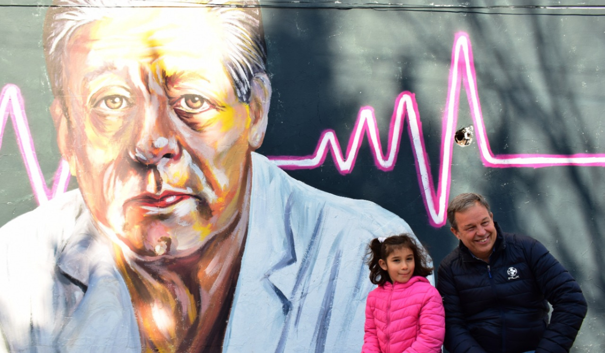 El homenaje al doctor Favaloro consistió en la inauguración de un imponente mural en la localidad de José Mármol, obra de los artistas "Tin" y María Agustina Villalba en el marco del programa "Ciudad Museo a Cielo Abierto" del Instituto Municipal de las Culturas de nuestro distrito.