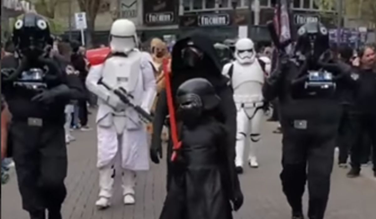 Todos los personajes de la reconocida película de ciencia ficción desfilaron desde la Casa de la Cultura, ubicada en Esteban Adrogué 1124, y recorrieron las calles Somellera y Spiro, hasta retornar al punto de salida. A la vuelta, los vecinos tuvieron la oportunidad de sacarse fotos.