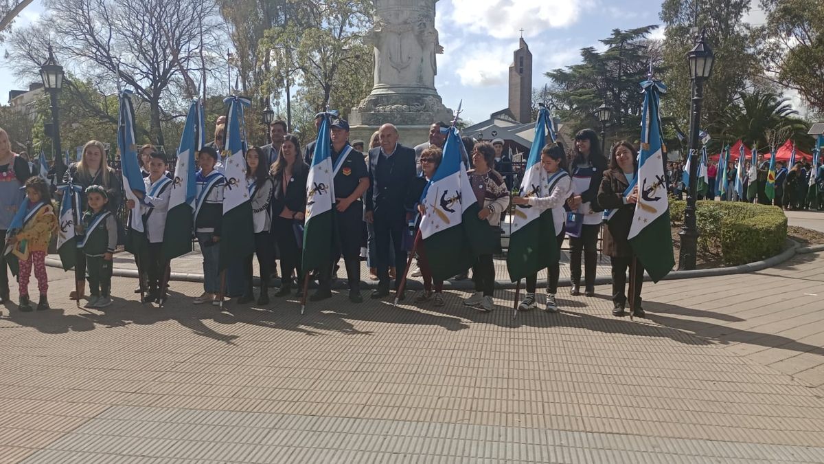 Del acto participan bandas militares, grupos de baile, representantes y alumnos de instituciones educativas, culturales y deportivas del distrito, vecinos destacados, bomberos, policías, autoridades municipales; entre ellas el diputado Mariano Cascallares, el intendente Juan Fabiani y el presidente del Concejo Deliberante local, Nicolas Jawtuschenko.