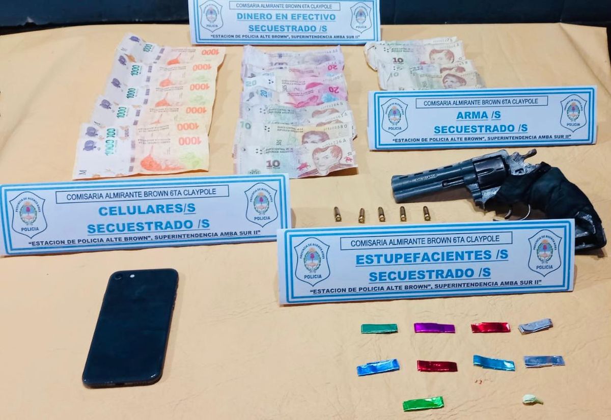 La Policía Bonaerense de Almirante Brown detuvo a un delincuente acusado de robar armado, junto a otro que está prófugo, dos celulares a unas vecinas en la localidad de Claypole. El delincuente fue atrapado con uno de los teléfonos en su poder y además le secuestraron dosis de cocaína.