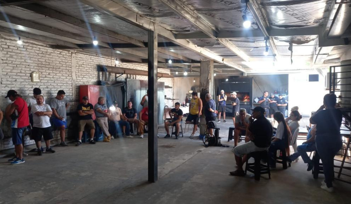 Una vez concedido el permiso judicial, se realiza el registro de la casa, donde se hallaban 43 personas y 23 gallos de riñas. Asimismo, se encontraron chalecos, picos llaveros, alimentos, remeras, picos de pelea y energizantes para los animales.