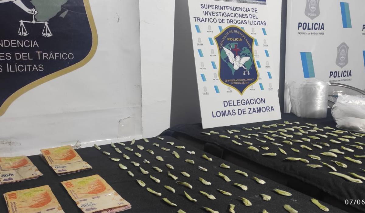En el marco de la investigación llevada adelante por la UFIyJ N°14 de Lomas de Zamora a cargo de los fiscales Gustavo Caram y Esteban Berriel, se allanaron seis propiedades en Claypole, que fueron llevadas adelante por 16 grupos operativos pertenecientes a la Superintendencia de Drogas Ilícitas e integrados por 52 agentes, los cuales realizaron minuciosos registros domiciliarios, en los que hallaron clorhidrato de cocaína fraccionada, elementos de corte y estiramiento, marihuana, dinero en efectivo y balanzas digitales.