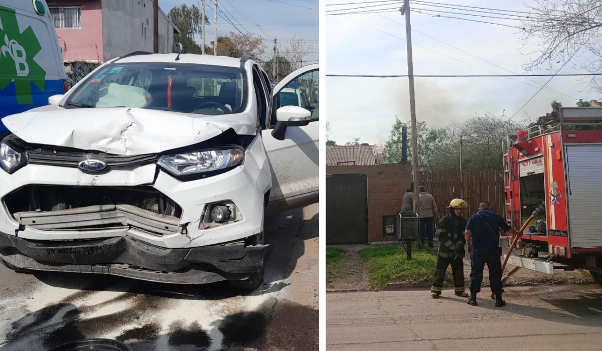 Incendio y choques en Longchamps: dos heridos