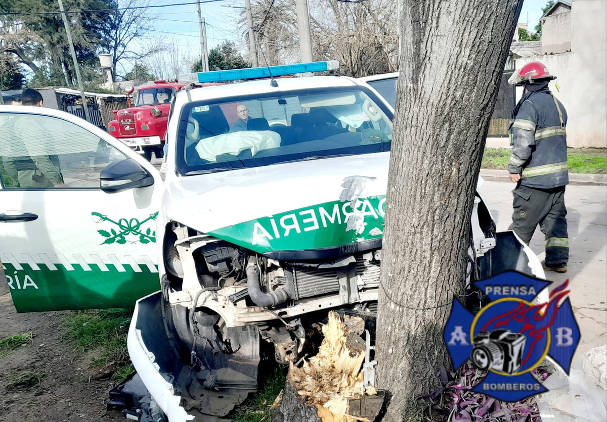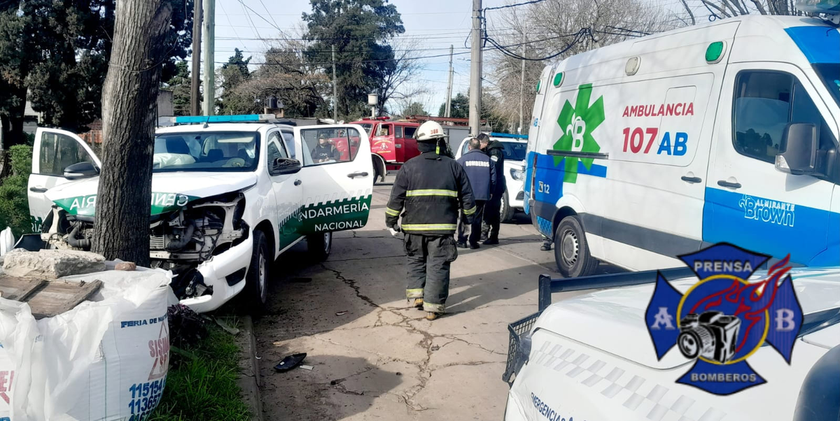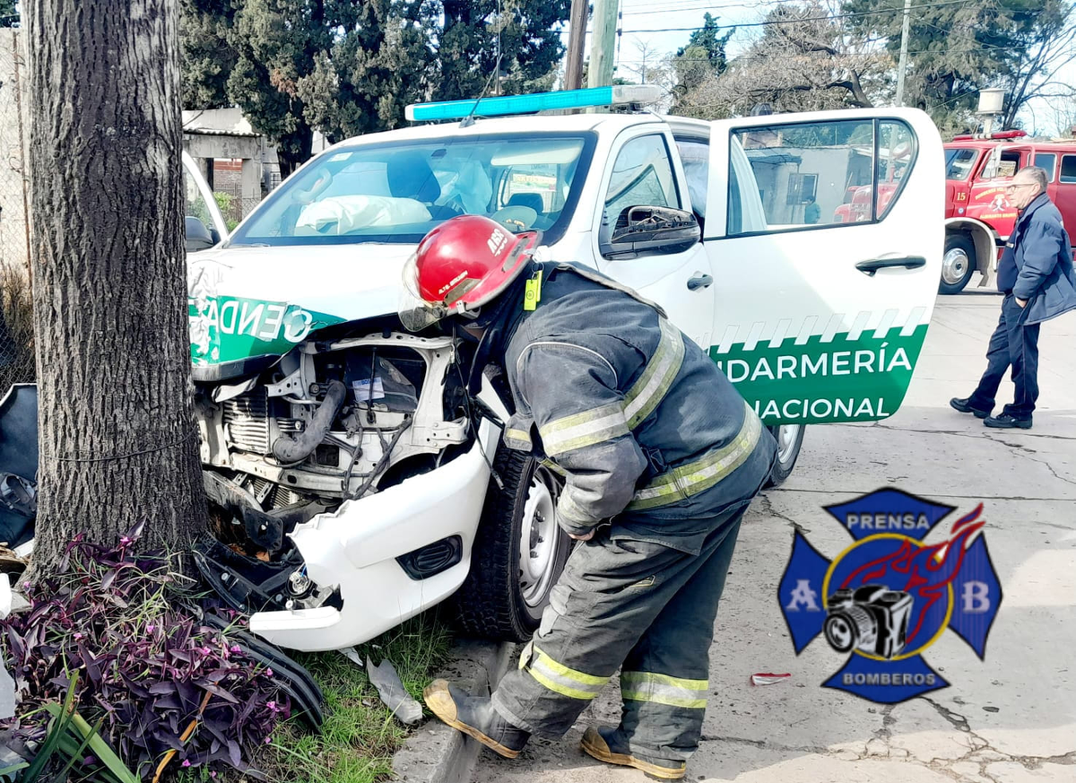 Los cuatro miembros de Gendarmería Nacional fueron asistidos por personal médico municipal tras chocar violentamente contra un árbol en Amirante Brown.