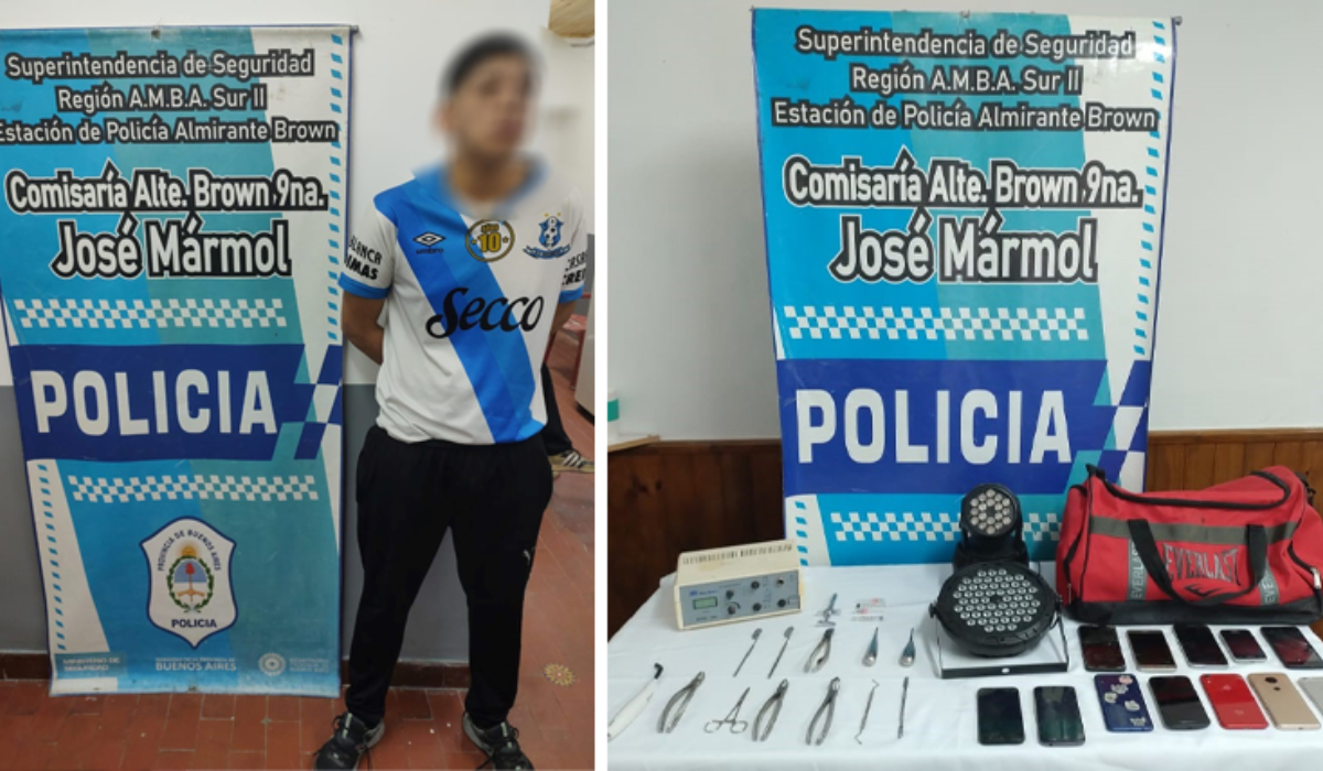 Tres delincuentes fueron detenidos días pasados por participar en dos robos en la localidad de José Mármol, partido de Almirante Brown. Uno en el consultorio de un odontólogo y otro en una obra en construcción, en el marco de un raid delictivo.