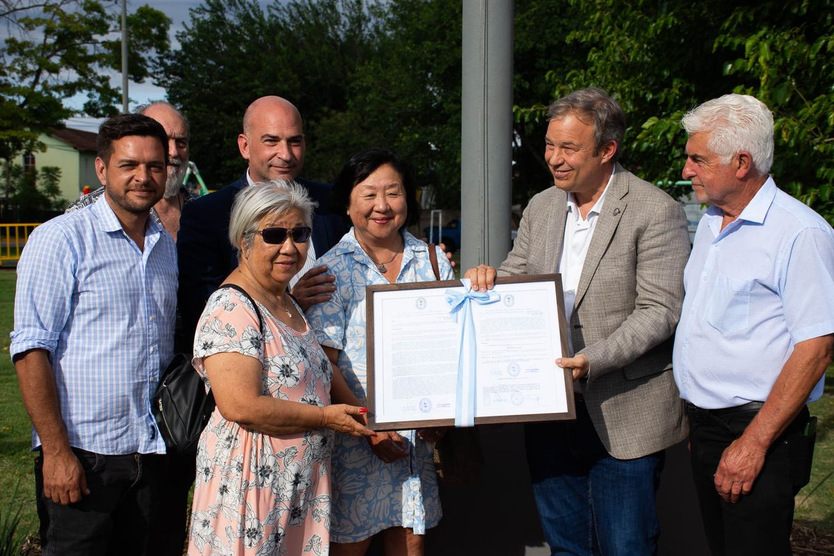 En la oportunidad los familiares de los homenajeados recibieron un cuadro con la copia de las ordenanzas que establecen los reconocimientos: se entregó la norma Nº 13.379 a la familia Tsuji y la Nº 13.517 a la familia del oficial Garay.