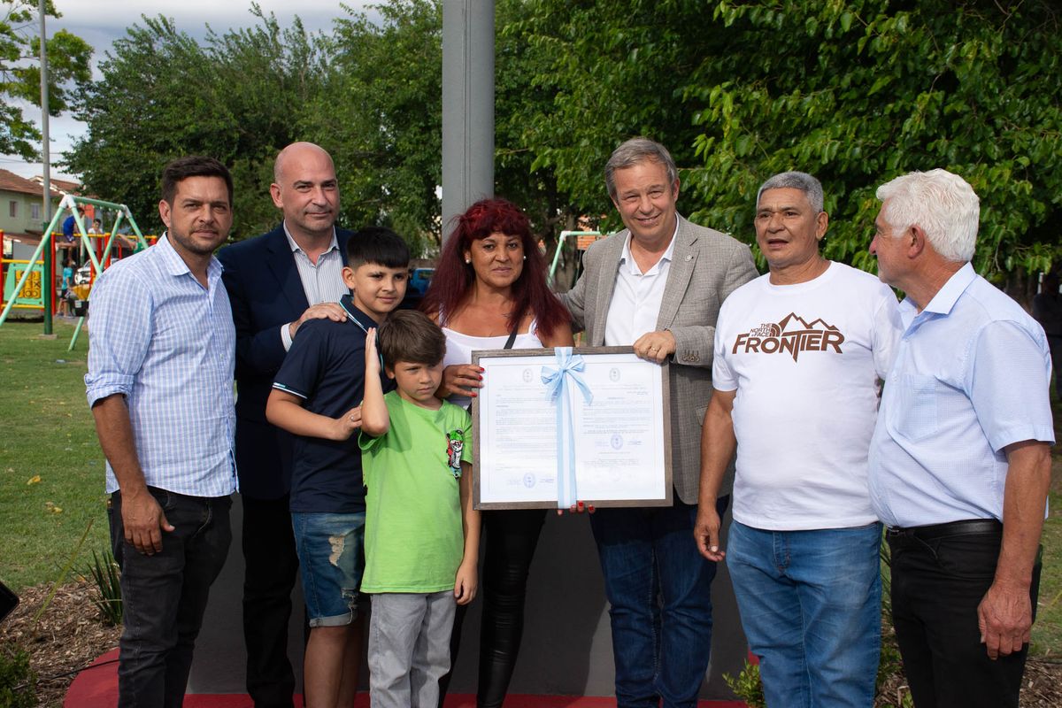 Por su parte, Rosa del Carmen Alomo -que estuvo acompañada por sus nietos-, sumamente emocionada agradeció al Municipio y a los vecinos que hicieron posible el homenaje a su hijo policía.