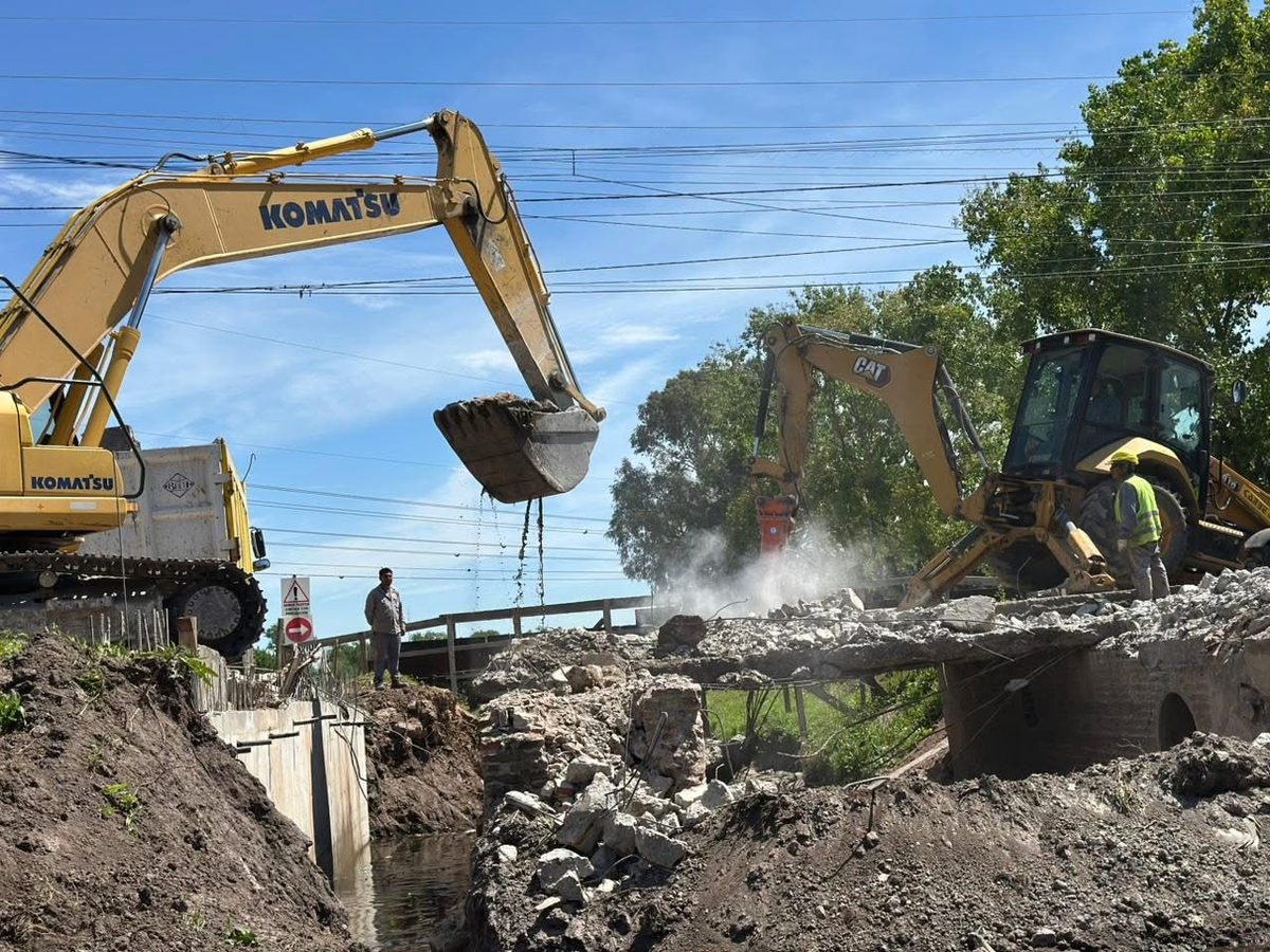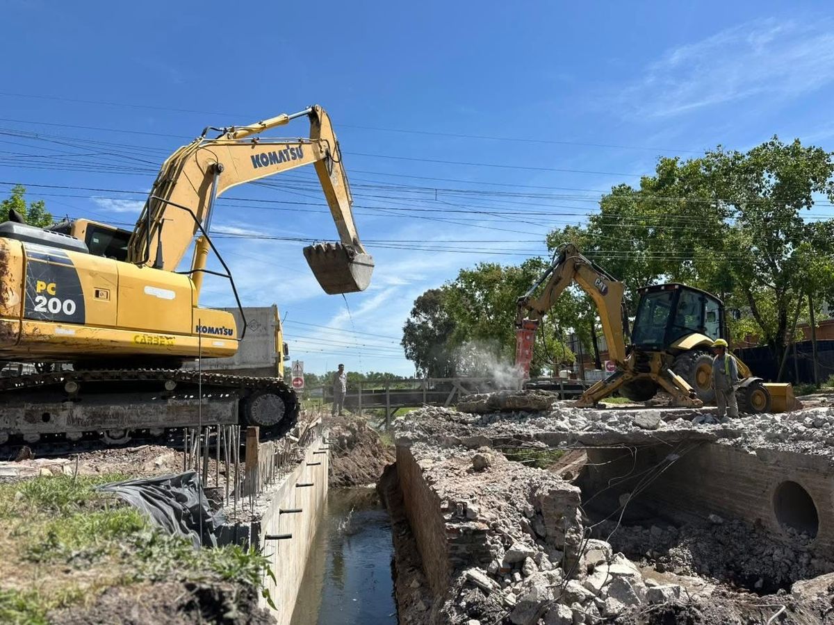 Las tareas se concentran en la intersección de las calles Presidente Roberto M. Ortiz y Álvaro Pintos, dentro del Sector Industrial Planificado del distrito. Allí se lleva adelante la demolición de una antigua alcantarilla sobre el Arroyo del Rey, que será reemplazada por una nueva estructura tipo puente. Esta intervención permitirá mejorar la circulación vehicular y el drenaje del agua en el área, uno de los puntos más afectados por los anegamientos.