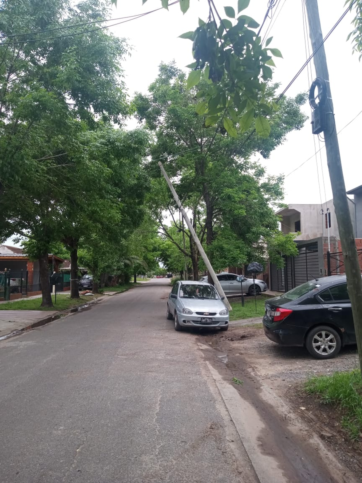 El fuerte viento y la lluvia registrados entre el viernes 24 y el sábado 25 de octubre provocaron distintos daños en el distrito de Almirante Brown, entre ellos la inclinación de varios postes y árboles. En este caso, el poste afectado quedó en un ángulo peligroso sobre la calle Alsina, generando un riesgo tanto para los peatones como para quienes circulan por la cuadra.