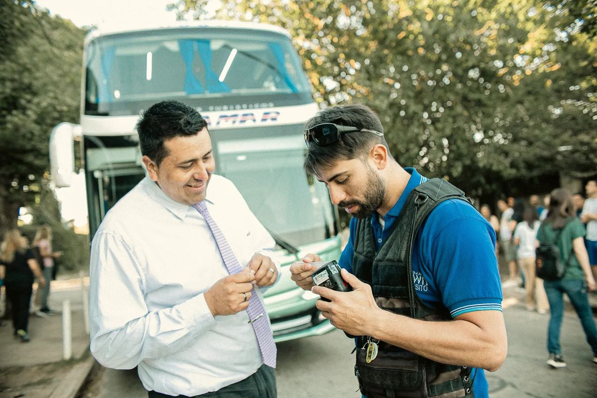 Uno de los controles recientes se desarrolló en el Club Pucará de Burzaco, donde los equipos municipales realizaron las pruebas preventivas a los choferes y una revisión de la unidad antes de la partida de un grupo estudiantil.