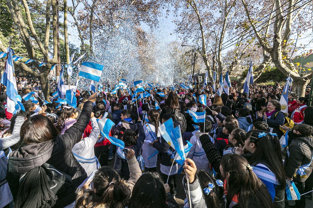 La Municipalidad de Almirante Brown conmemoró el "Día de la Bandera" en un multitudinario y colorido acto realizado en la localidad de Burzaco.