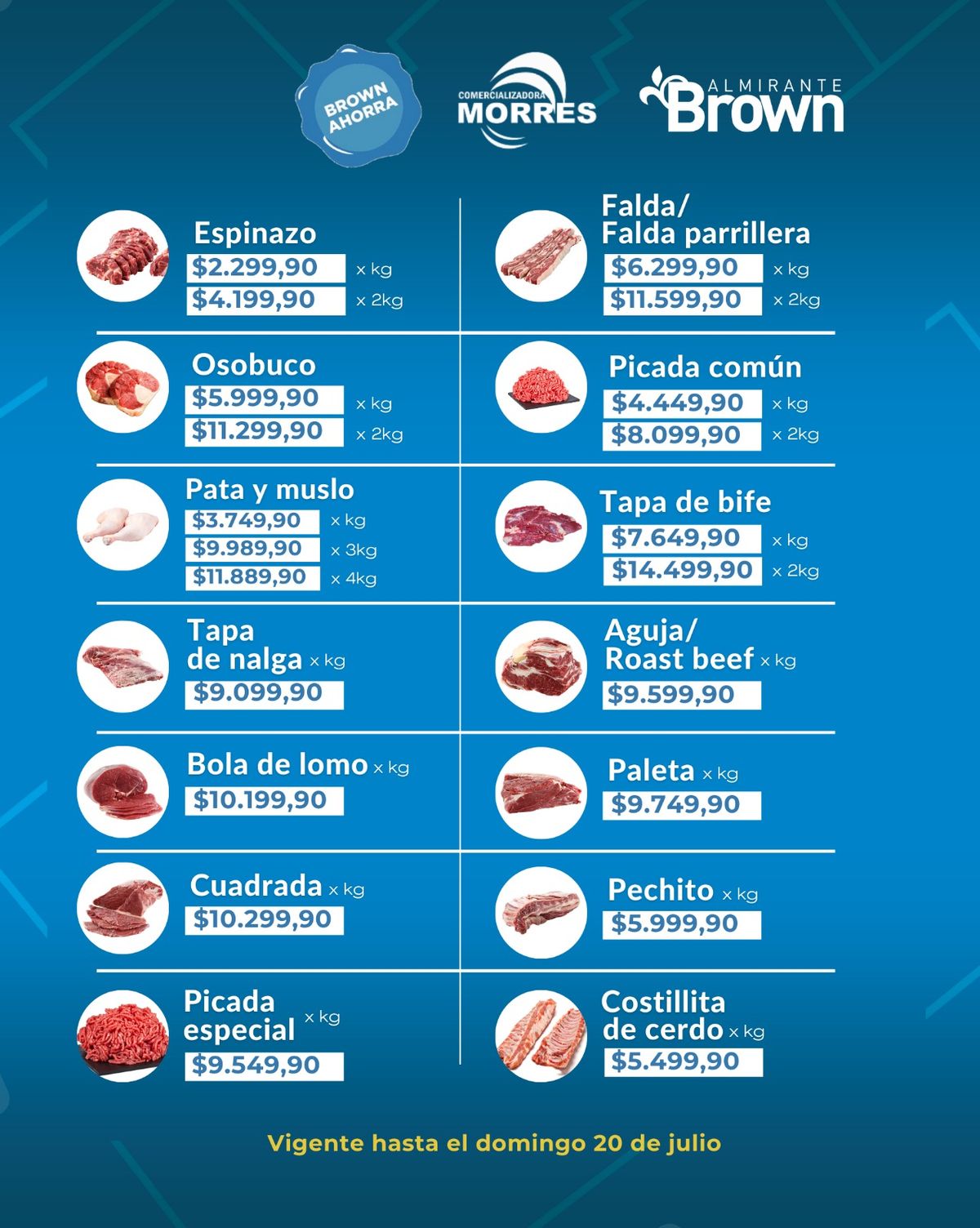 El Municipio de Almirante Brown informó que renovó el acuerdo de precios con una importante cadena de frigoríficos de la Región y, entre otras ofertas, puede conseguirse el kilo de cuadrada a $10.299.