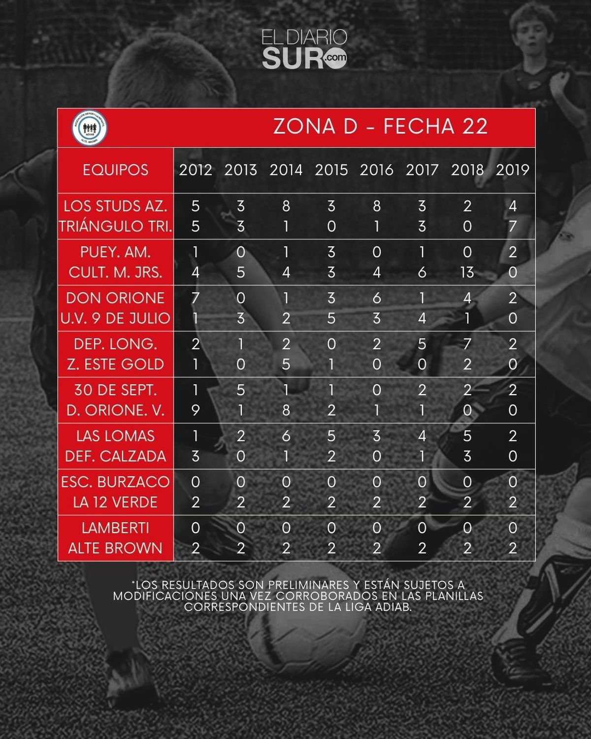 Los resultados son preliminares y están sujetos a modificaciones una vez corroborados en las planillas correspondientes de la liga ADIAB. No son información definitiva.