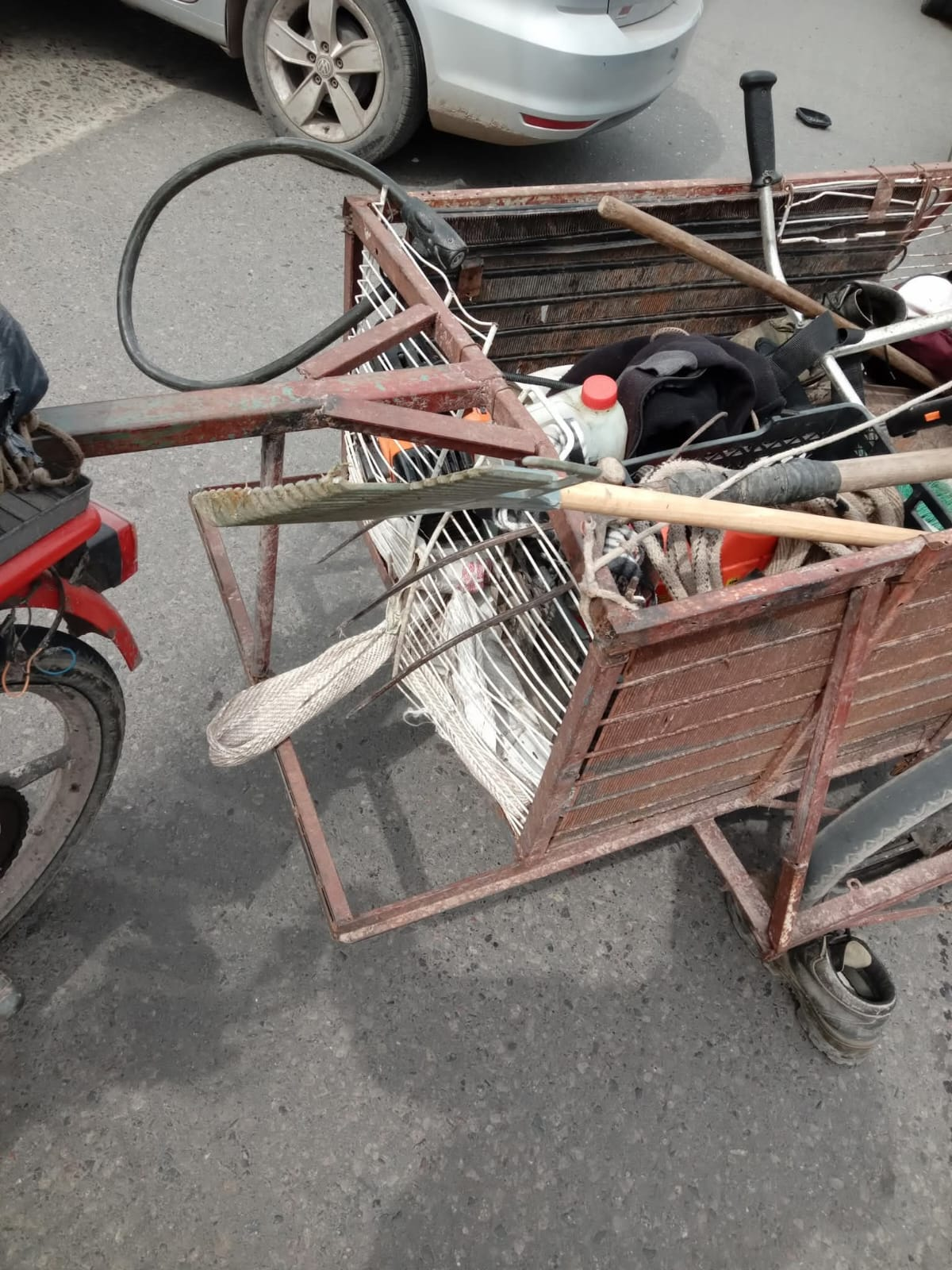 En ese sentido, la parte lateral de la carrocería fue abollada y se rompieron algunas de las herramientas de trabajo, las cuales las trasladaba en la parte de atrás mediante un carro. Además, expresó en las redes sociales que sufrió golpes de consideración en el sector del hombre y el pie.