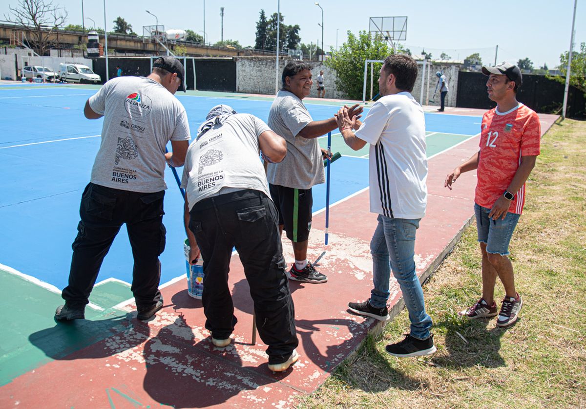 Durante la jornada se realizaron tareas de pintura y reacondicionamiento del espacio deportivo, con el objetivo de mejorar las condiciones de uso del espacio y fortalecer los ámbitos de práctica deportiva comunitaria de la institución. Las acciones estuvieron orientadas a la revalorización de los espacios deportivos barriales y al acompañamiento a los clubes de barrio en su rol social y deportivo.