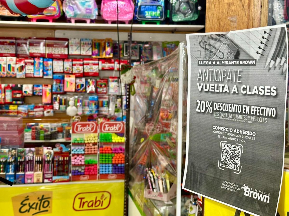 El Municipio de Almirante Brown anunció la puesta en marcha de un acuerdo de precios con comercios del distrito que contempla un 20% de descuento en compras para el inicio de clases. El beneficio se aplica abonando en efectivo en librerías, zapaterías, marroquinerías e indumentaria.