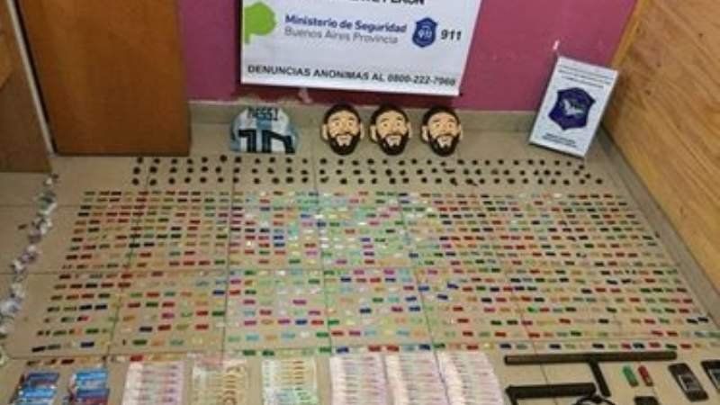 En el operativo se secuestraron 1500 envoltorios de cocaína listos para su venta, varias dosis de marihuana, una escopeta de fabricación casera, municiones de distintos calibres, efectivo y camisetas de la selección argentina.